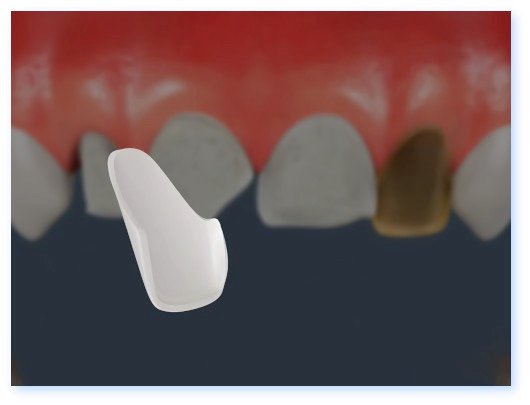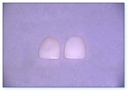ressemblant à des « faux ongles », collées sur les dents dont la surface a été légèrement réduite en épaisseur.